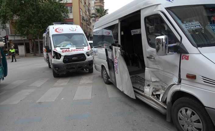 Denizli’de hasta taşıyan ambulansın şehir içi dolmuşuyla çarpıştığı trafik kazasında bir sağlıkçı ile dolmuştaki bir yolcu yaralandı.