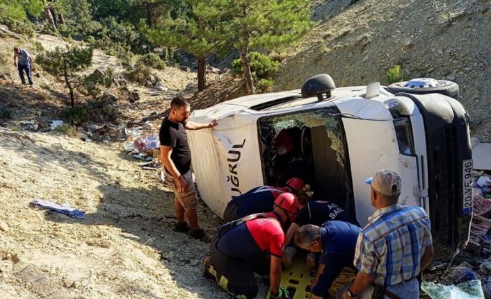 Denizli’nin Acıpayam ilçesinde hırdavat malzemesi taşıyan minibüs şarampole yuvarlandı, araç içerisinde sıkışan 2 kişi yaralı olarak kurtarıldı.