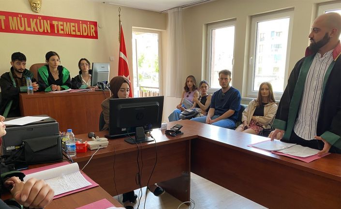Medeni Usul ve İcra İflas Hukuku Anabilim Dalı Başkanı Dr. Öğr. Üyesi Ramazan Korkmaz tarafından hazırlanan ve öğrencilere dağıtılan kurgusal duruşma metinleri üzerinde gerekli hazırlıklarını yaparak dava dosyalarını tamamlayan öğrenciler, tahkikat duruşmasında gerçek bir hâkim ve avukat gibi duruşma salonunda cübbe giyerek savunma yaptı.