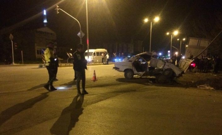 Işık ihlali yapan kamyon otomobili hurdaya çevirdi