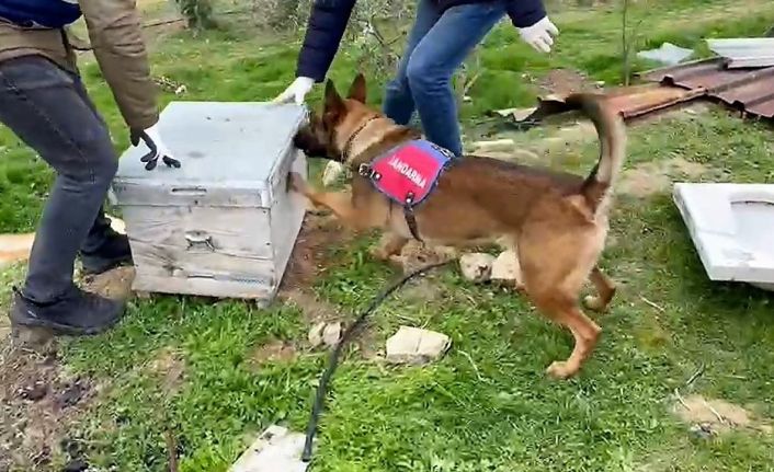 Jandarma KOM ekiplerinin geniş bir alana sahip olan bağ evinde yaptıkları aramalara narkotik dedektör köpekleri Artı, Manşet ve Balya da destek verdi. Yapılan aramalarda bağ evi ve eklentilerinin yanı sıra arı kovanları, dere kenarı ve sazlıkların arasına gizlediği poşetlenerek satışa hazır hale getirilmiş 11 kilo 200 gram esrar maddesi, yeni dikilmiş 18 kök kenevir bitkisi, 1 adet av tüfeği, 1 adet kuru sıkı tabanca ve 4 adet uyuşturucu hap ele geçirildi.