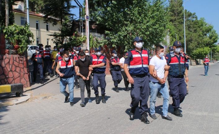 Denizli’de Jandarma ekipleri Acıpayam merkezli 22 farklı adrese uyuşturucu operasyonu düzenledi. Jandarma Özel Harekat destekli operasyonda gözaltına alınan ve ardından adliyeye sevk edilen 20 şüpheli şahsın 15’i tutuklanarak ceza evine gönderildi.