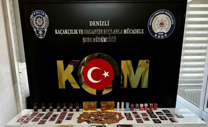 Denizli’de binlere kaçak cinsel içerikli ilaç, tütün ve alkolü piyasaya sürmeyi planlayan 5 şüpheli, 4 farklı operasyonda yakalandı.