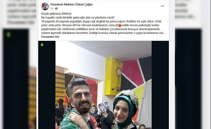 Vahşi cinayetin yaşandığı Pamukkale ilçesine bağlı Pınarkent Mahallesi’nin kadın muhtarı Özlem Çağlar, severek evlendiği kocası tarafından defalarca bıçaklanarak öldürülen 18 yaşındaki Elif Irmak için sosyal medya hesabından duygusal bir paylaşım yaptı.