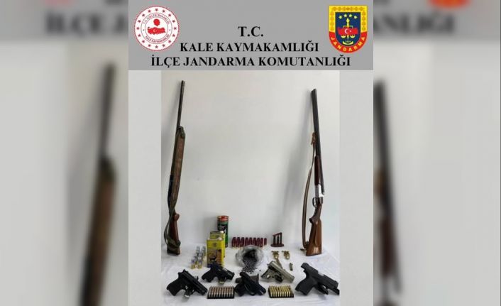 Denizli’nin Kale ilçesinde yasa dışı silah ve mühimmat bulundurulduğu bilgisi üzerine jandarma ekipleri harekete geçti. Kale İlçe Jandarma Komutanlığı ekipleri, Kale Cumhuriyet Başsavcılığı koordinesinde yürütülen çalışma kapsamında ilçede operasyon gerçekleştirildi. Operasyon kapsamında adreste ve araçlarda yapılan aramalarda 5 adet tabanca ve şarjörü, 2 adet av tüfeği, 60 adet ses fişeği, 50 adet 7.65 çapında fişek, 5 adet tabanca parçası ve 1 adet tabanca şarjörü, 2 kilogram barut, 35 adet kartuş ile 6 parça kartuş dolum aparatı ele geçirildi. Operasyon kapsamında yakalanan 2 şüpheli şahıs hakkında adli işlem başlatıldı.