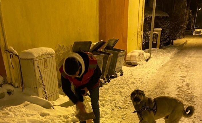 Denizli’nin Kale ilçesinde Alperen Ocağı üyesi gençler tarafından aşırı kar yağışının ardından sokak hayvanları için sokak sokak yemleme yapıldı.