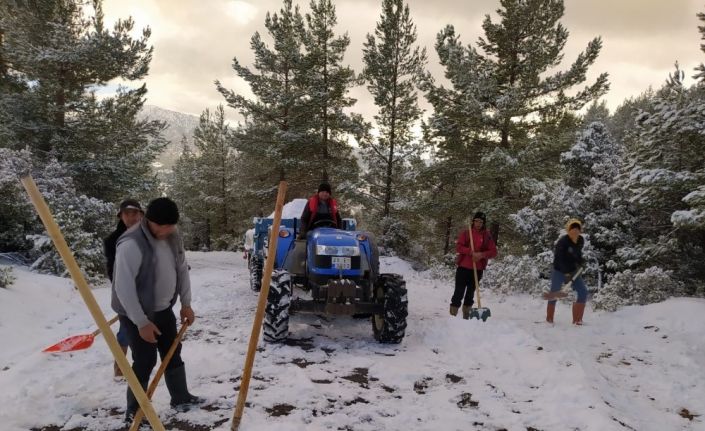 Çameli’nin yüksek rakımlı mahallesi olan Emecik Mahallesinde yaz aylarında kullanılacak karların saklanması için yüksek kesimlere çıkan mahalle sakinleri, topladıkları karları kuyulara gömdü.