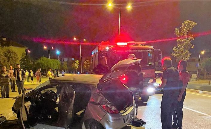 Kontrolden çıkan araç direğe çarpıp takla attı