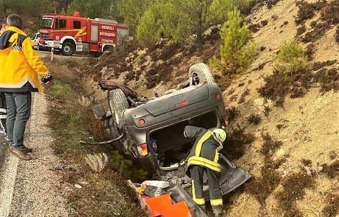 Denizli’nin Çameli ilçesinde, kontrolden çıkan otomobilin şarampole yuvarlanarak ters döndüğü kazada sürücü yaralandı.