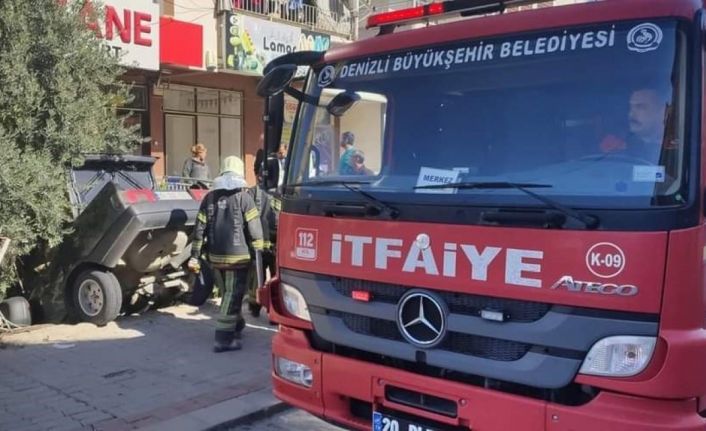 Denizli’nin Merkezefendi ilçesinde kontrolden çıkan otomobil, bir evin bahçesine uçarak çakılıp kaldı. Sürücünün yara almadığı kaza sonrası otomobil hurdaya döndü.