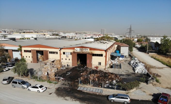 Denizli’de gece saatlerinde alevlerin sardığı geri dönüşüm fabrikasında hasar gün ışığıyla ortaya çıktı. küle dönen fabrikada temizlik çalışmaları sürüyor.