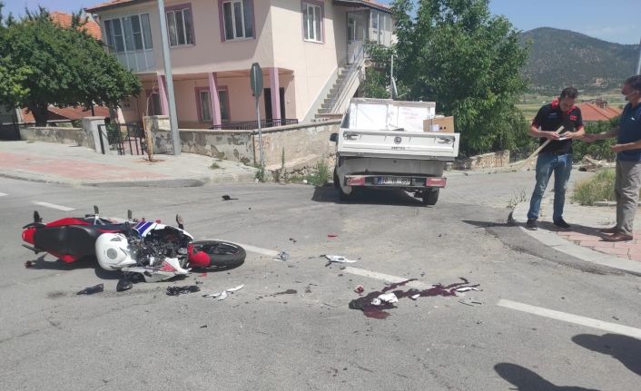 Denizli’nin Çameli ilçesinde hafif ticari araçla motosikletin çarpıştığı kazada, yola savrulan genç motosiklet sürücüsü ağır yaralandı.