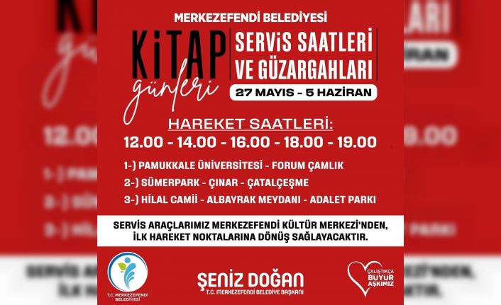 Denizli’de Merkezefendi Belediyesi tarafından düzenlenen ve 27 Mayıs-5 Haziran tarihleri arasında devam edecek olan Kitap Günleri’ni ziyaret etmek isteyen vatandaşlar için özel servis kaldırılacak.