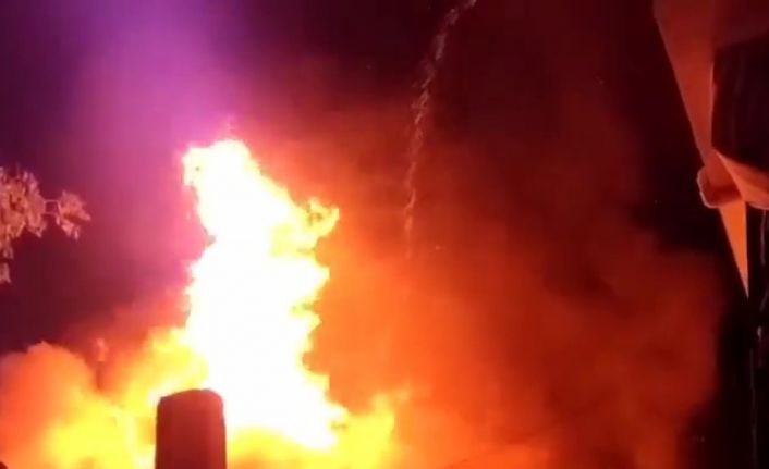 Denizli’de alev alev yanan iki katlı metruk binadaki yangın, diğer evlere sıçramadan söndürüldü.