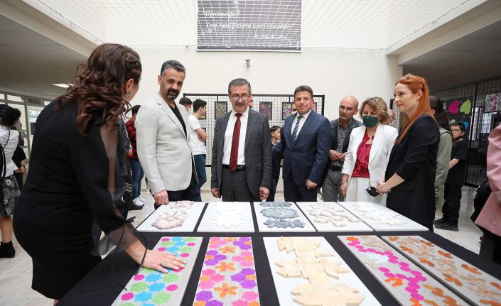 mozaik taş boyama süsleme çalışmaları, Eğitim Fakültesi’nde düzenlenen sergide görücüye çıktı.