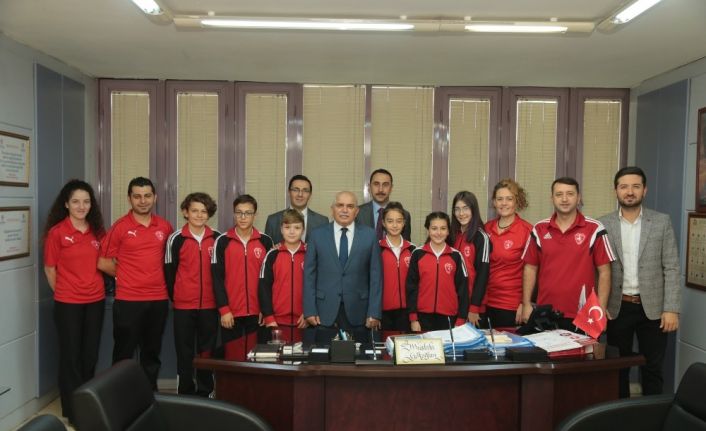 19-20 Ekim tarihleri arasında Bursa’da gerçekleştirilecek 11-12 Yaş Yüzme Bölge Yarışlarına katılacak Denizli Büyükşehir Belediyespor Yüzme Takımı sporcuları Büyükşehir Belediyesini ziyaret etti. Denizli Büyükşehir Belediyesi Genel Sekreter Yardımcısı Mustafa Gökoğlan’ın ağırladığı sporcu ve antrenörlere, Sosyal Hizmetler Dairesi Başkanı Erdal Işık eşlik etti. Sporcular bugüne dek kendilerine destek veren Büyükşehir Belediye Başkanı Osman Zolan’a teşekkür ederek, turnuvada Denizli’yi başarıyla temsil edeceklerini söyledi. Büyükşehir Belediyesi olarak her zaman sporun ve sporcunun yanında olduklarını vurgulayan Genel Sekreter Yardımcısı Gökoğlan ise, yüzme takımı sporcularına turnuvada başarılar diledi.