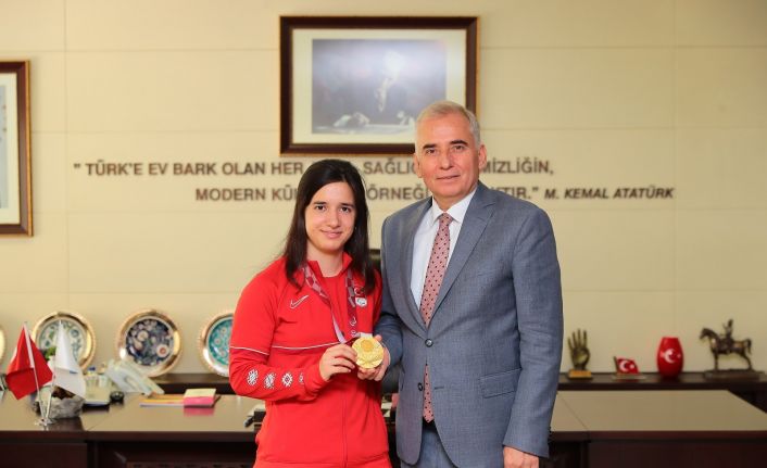 Tokyo 2020 Paralimpik Oyunları’nda Türkiye’ye altın madalya kazandıran Goalball Milli Takımı’nın Denizlili sporcusu Şeyda Nur Kaplan, Denizli Büyükşehir Belediye Başkanı Osman Zolan’ı ziyaret etti.