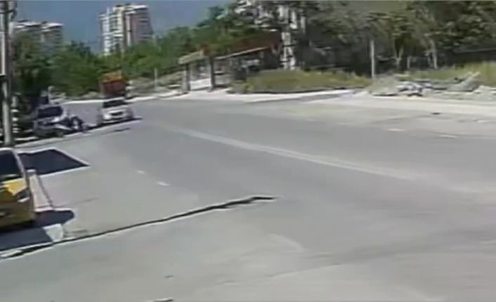 Kaza anını güvenlik kameralarına anbean yansıdı. Görüntülerde yolda ilerleyen otomobile ara yoldan çıkan motosikletin süratle gelerek çarptığı görülüyor. Çarpmanın etkisiyle motosiklet sürücüsü metrelerce öteye savrulması dikkat çekti.
