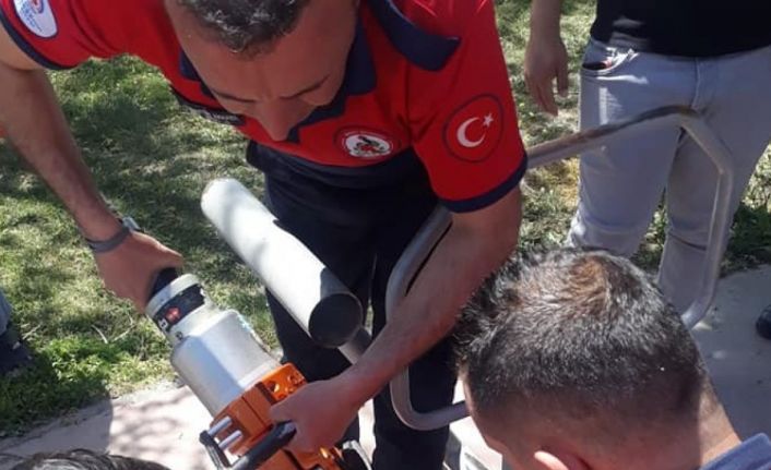 Oyun oynamak isterken ayağını sıkıştırdı