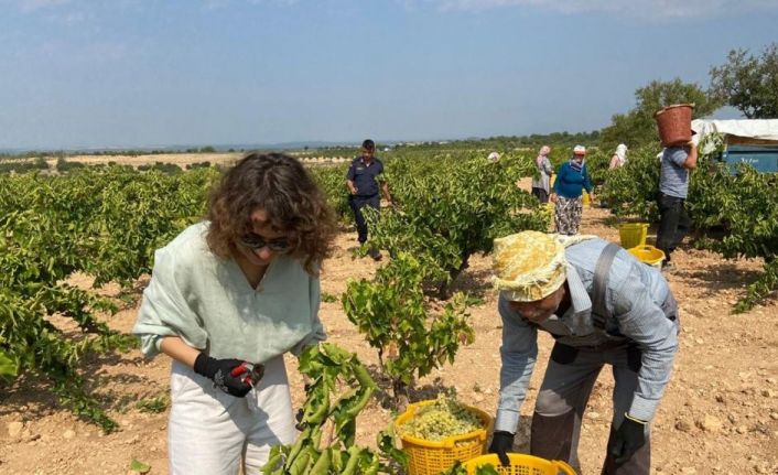 Türkiye’nin yamaç paraşütü pilotu ilk kadın kaymakamı Dilara Şenoğlu, şalvarını giyerek üreticilerle birlikte üzüm hasadı yaptı.