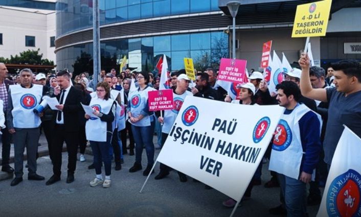 Pamukkale Üniversitesi Hastanesinde 4/D kadrosunda çalışan işçiler kendilerine verilen sözlerin yerine getirilmediği gerekçesiyle eylem yaptı. İki yılda bir imzalanan Toplu İş Sözleşmesi (TİS) kapsamında geleceklerini şekillendirdiklerini belirten işçiler, aynı çatı altında aynı masada çalıştıkları mesai arkadaşlarından farklı ücretlerle farklı çalışma saatlerine zorlandıklarını ifade etti. PAÜ Hastanesi önünce eylem yapan Türkiye Sağlık ve Sosyal Hizmet İşçileri Sendikası üyeleri adına bildiri okuyan Denizli İl Temsilcisi Zeki Kılıç, 2022-2024 dönemi toplu iş sözleşmesinde yeni personel alımında farklılıkların düzeltileceği açıkça belirtilse de yeni personel alınmasına rağmen herhangi bir düzeltme yapılmadığını söyledi.