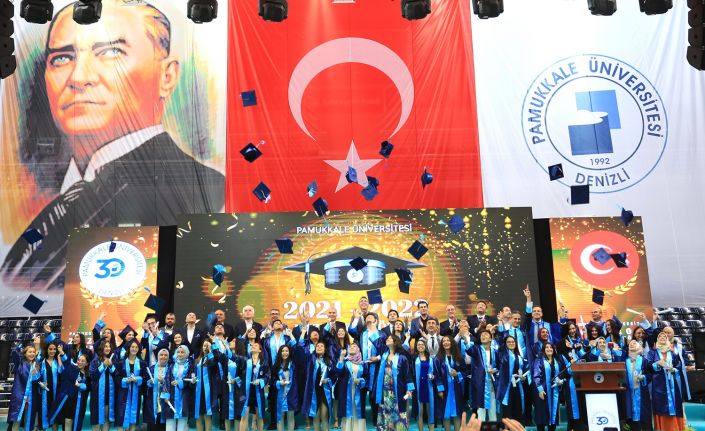 Pamukkale Üniversitesi (PAÜ) 2021-2022 eğitim öğretim yılı mezunlarını coşkulu bir törenle yeni yaşamlarına uğurladı. Rektör Prof. Dr. Ahmet Kutluhan, üreten üniversite olarak şehirle bütünleşme yolunda çok sağlam adımlar attıklarını, atmaya da devam edeceklerini vurguladı.