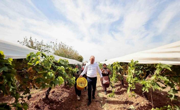Başkan Osman Zolan, konuşmasına şöyle devam etti; “İnşallah çevreye zarar vermeden daha fazla üretip, geleceğimizi karartmadan sofraya giden ürünlerin insanlara zarar vermeyecek şekilde üretmemiz gerekiyor. Sizlere hassasiyetinizden dolayı çok teşekkür ediyorum. İnşallah hep beraber böyle üretmeye devam edelim. İnşallah daha çok üreteceğiz. Her zaman üreticilerimizin yanındayız” diye konuştu. Denizli Büyükşehir Belediyesinin kentin 4 bir tarafında verdiği ceviz fidanı, elma sirkesi, yağlık ayçiçeği tohumu, silajlık mısır tohumu, damızlık koç ve teke desteği, tarımsal sulama borusu, tarımsal alet ve makina desteklerini anlatan Başkan Zolan, 50’yi aşkın kalemde çiftçi ve üreticiye destek verdiklerini kaydetti. Konuşmaların ardından Başkan Zolan ve beraberindekiler Büyükşehir Belediyesinin destekleriyle zararlılara karşı feromon yayıcı tel desteği verilen üzüm bağında incelemede bulundu, üzüm hasadı yaptı.