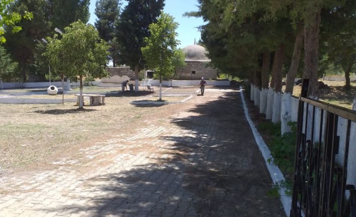 Denizli’nin Çal ilçesine bağlı Mahmutgazi Mahallesinde bulunan Mahmutgazi Türbesi’nde Kurban Bayramı öncesi düzenleme, tamirat ve temizlik çalışması yapıldı.