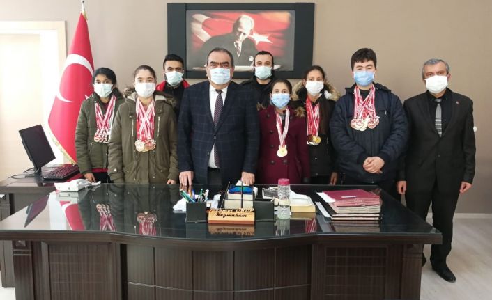 Kurs öğretmenleri Hasan Can ve Murat Dirier ile Serinhisar Halk Eğitimi Merkezi Müdürü Mehmet SelçukK ve öğrencilerden oluşan grup İlçe Kaymakamı Mehmet Okur’u makamında ziyaret etti. Kaymakam Okur, takım oyuncularını tebrik ederek başarılarının devamını diledi.