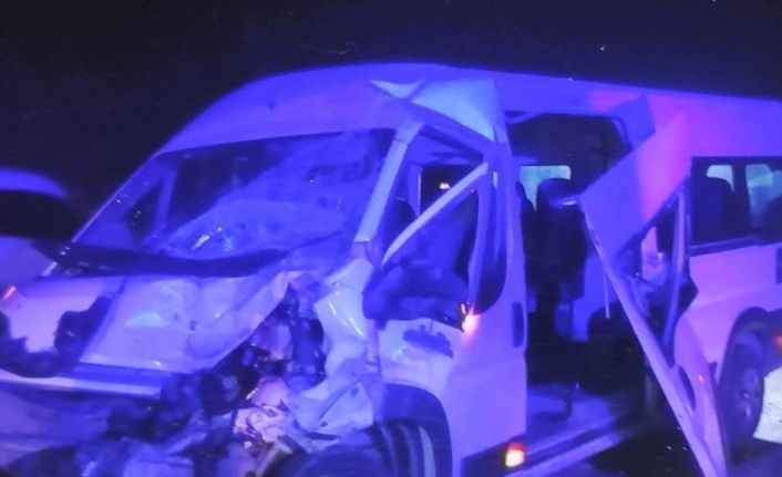 Denizli’de gece saatlerinde aynı istikamete giden saman yüklü kamyonetle işçileri taşıyan servis minibüsünün çarpışması sonucu 10 kişi yaralı olarak hastaneye kaldırıldı.