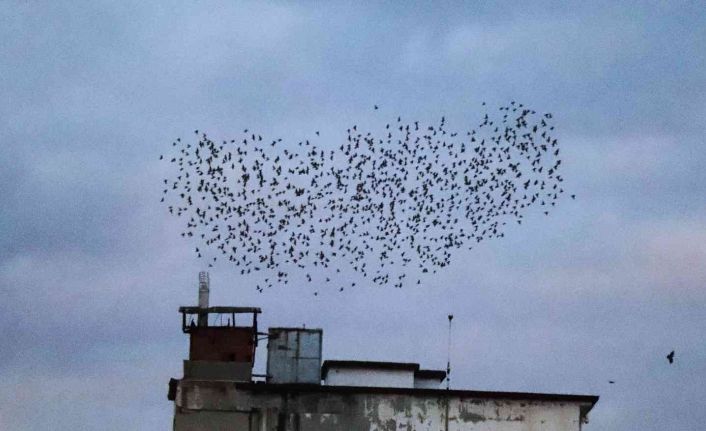Gökyüzünde çeşitli figürler çizen yüzlerce kuş, farklı yönlerde uçuşarak bir dans gösterisini andıran manzaralar ortaya çıkardı. Vatandaşların da ilgiyle izlediği kuşların görsel şöleni, güneşin doğmasıyla birlikte son buldu.