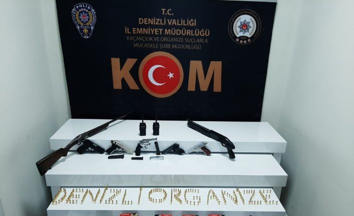 Denizli’de silah kaçakçılığı yapan şahıslara yönelik operasyon düzenlendi. Operasyon kapsamında şahısların üzerinden silahların yanı sıra telsizde çıktı.