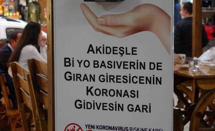 Türkiye’de artan korona virüsünden korunmak için en iyi yöntem maske, mesafe ve el dezenfektanı olarak değerlendirilirken, yetkililer de salgının yayılımını durdurmak için ‘dezenfektan’ uyarısı yapıyor. Sürekli yapılan uyarılara bir yenisi de Denizlili vatandaştan geldi. Denizli’de çaycılık 71 yaşındaki Yaşar Kabaklı, ‘dezenfektan kulanın’ çağrılarına yeni bir boyut kazandırarak, Ege şivesi ile yazılı dezenfektanı dükkanın önüne koydu. Vatandaşlardan yoğun ilgi gören dezenfektan üzerindeki “Akideşle bi yo basıverin de gıran giresicenin koronası gidivesin gari” okuyanların gülümsemesine neden oldu.