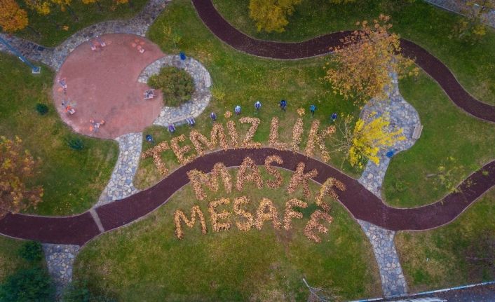 Korona virüs salgını sürecinde, canla başla görevlerini sürdüren Pamukkale Belediyesi’nde görevli temizlik işçileri tüm dünyaya mesaj gönderdi. Temizlik işçileri personelleri sonbaharın gelmesiyle birlikte sararan yaprakları parklardan süpürürken yapraklarla “Temizlik-Maske-Mesafe” yazarak tüm dünyaya mesaj gönderdiler. Salgın sürecinin bitmesini sağlayacak en önemli 3 maddeyi, sararan yapraklarla park alanına yazan temizlik işçileri “Zor günlerden geçiyoruz. Bu süreçte evde kalarak, temizlik, maske ve mesafe kurallarına uymamız gerekiyor” mesajı verdiler.