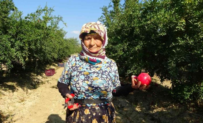 Denizli’de mevsimlik işçi olarak tarlalarda nar toplayan 64 yaşındaki Zehra zeybek, çalışma azmiyle gençlere taş çıkartıyor.