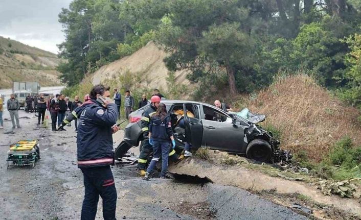 Metrelerce sürüklediği otomobili hurdaya çeviren tır, yoldan çıkarak ormanlık alana devrildi. Kazada ilk belirlemelere yöre otomobilde bulunan birisi 3 yaşında bebek olmak üzere 3 kişi öldü, tır sürücüsüyle birlikte 2 kişi yaralandı. Araçlar içerisinde sıkışan yaralılar ve cenazeler, itfaiye ekiplerinin uzun uğraşları sonucu kurtarıldı. Olay yerinde ilk müdahaleleri yapılan yaralılar, ambulanslarla bölgedeki hastanelere sevk edildi.