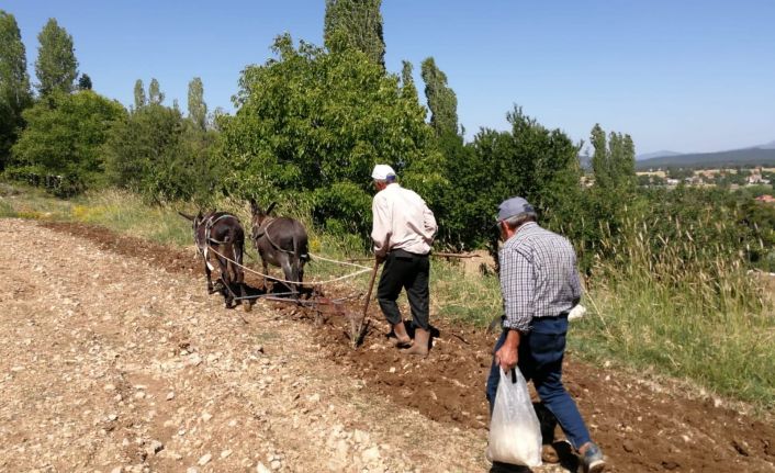 Denizli’nin ürettiği fasulyesi ile ünlü Çameli ilçesinde bu yılda eşeklerle kara sabanla sürülen tarlalarda fasulye tohumları toprakla buluşturuldu. Meşhur fasulye tohumlarının üzeri, yine eşeklere bağlanan sürgü yardımı ile kapatılıyor. Bir dönüme 10 kilogram ekilen meşhur Çameli fasulyesi tohumlarından eylül ayında yapılacak hasatta yaklaşık 300 kilogram ürün alınması hedefleniyor.