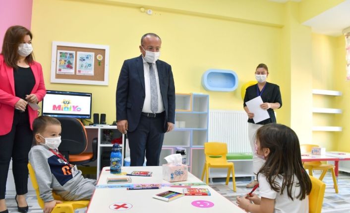Öte yandan, Vali Ali Fuat Atik, Merkezefendi Kaymakamı Dr. Adem Uslu ile İl Milli Eğitim Müdürü Mahmut Oğuz ilk ders zilinde Merkezefendi Yenişehir Anaokulu’nu ziyaret etti.