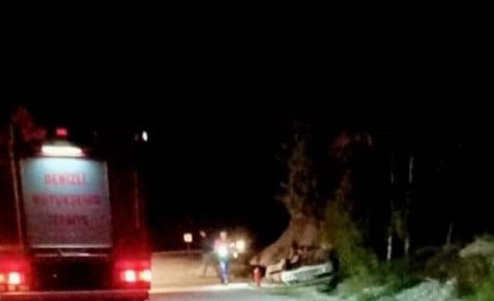Denizli’nin Çameli ilçesinde sürücüsünün direksiyon hakimiyetini kaybettiği otomobil, virajı alamayarak şarampole savrulup devrildi.