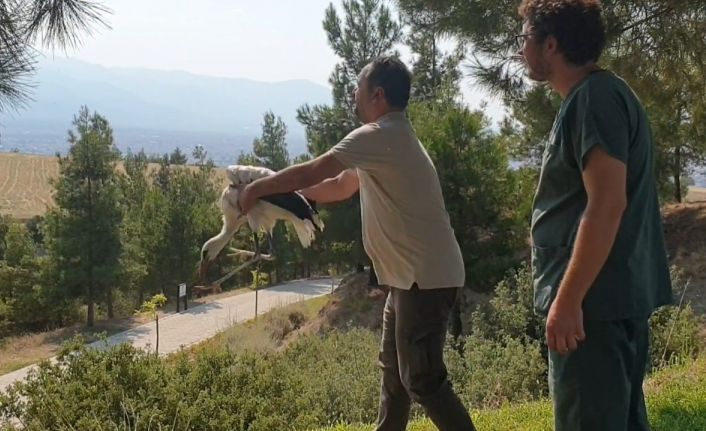 Denizli’de bir vatandaş tarafından yaralı halde bulunan leylek, tedavi edildikten sonra doğal yaşam alanına bırakıldı.