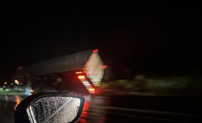 Öte yandan, şiddetli yağış nedeniyle Manisa- Denizli karayolu Bölmekaya mevkiinde yoldan çıkan tır, şarampole devrildi. Meydana gelen kazada tırda maddi hasar oluşurken, can kaybı yaşanmadı.