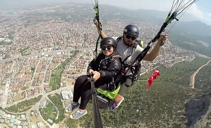 Sportif havacılık kulüpleri olarak büyük zaferin 100. yılını 100 uçuşla kutladıklarını anlatan yamaç paraşüt pilotu Ali Güven, “O zamandan beni ulusal ve uluslararası etkinlikler yaptık, sporcular yetiştirdik. Birçok etkinlik yapıyoruz. Son etkinliğimizi 28-29 ve 30 Ağustos’ta uçuşlar yaptık. Valilik ve Büyükşehir Belediyesi destek verdi. Teleferik bölgesinden uçuşlar yaptık. 30 Ağustosun 100 yılında şehitlerimizi anmak istedik. Zaferi kutladık. Teleferikten uçuşlar yapıp kampüse iniş yaptık. Şehitlerimizi en iyi anlak içinde Türk bayrağını dalgalandırmak istedik. 20 sporcumuz atlayışlar yaptı. 30 üniversite öğrencimizi de gökyüzüyle buluşturduk” dedi.