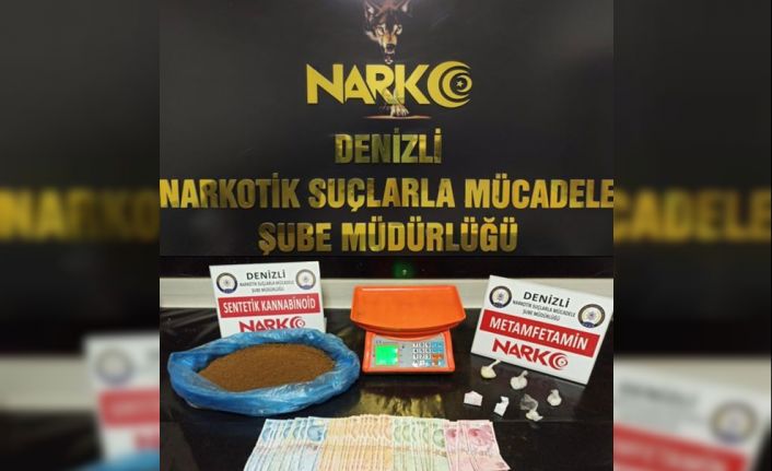 Denizli’de Narkotik timleri bir şahsın evinde uyuşturucu madde bulundurduğu ve ticaretini yaptığı bilgisi üzerine harekete geçti. Kısa süreli fiziki ve teknik takibin ardından zehir tacirinin evine operasyon düzenlendi. Operasyon kapsamında zehir taciri gözaltına alınırken, bin 102 gram kannabinoid, 22 gram metamfetamin, hassas terazi ve uyuşturucu madde ticaretinden elde edildiği değerlendirilen 2 bin 300 TL’n ele geçirildi. Emniyetteki işlemlerinin ardından adliyeye sevk edilen şüpheli tutuklanarak cezaevine gönderildi.