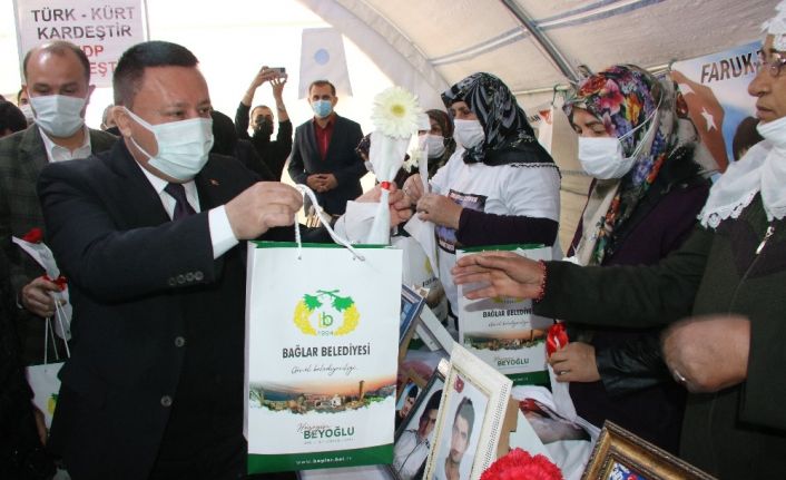 Diyarbakır Bağlar Belediye Başkanı Hüseyin Beyoğlu ve eşi Dürdane Beyoğlu, evlat nöbetindeki ailelere destek ziyaretinde bulundu.