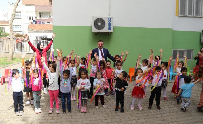 Bağlar Belediyesi bünyesinde aile ve eğitim merkezlerinde eğitim gören yaklaşık 500 çocuk, okul öncesinden öğretici çalışmalara kadar birbirinden farklı faaliyetlere katılarak hem eğitim alıyor, hem de eğlenceli zaman geçiriyor. Kreş, okul öncesi eğitim ve oyun evleri gibi çalışmalarda yer alan miniklerle bir araya gelen Başkanı Beyoğlu, çocukların okuma azmine hayran kaldığını ifade ederek çeşitli türlerden oluşan kitap ve eğitim setleri hediye ettiklerini söyledi.
