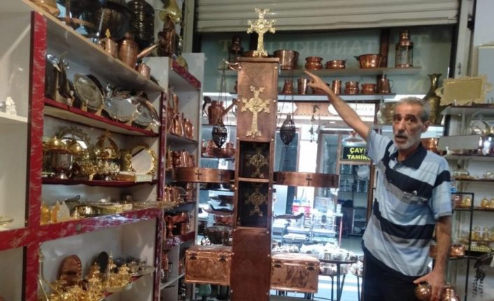 Diyarbakır’da 50 yıla aşkın bakır ustalığı yapan Ahmet Altun’un kiliseler için yaptığı adaklık 30 bin dolara satışa sunuldu.