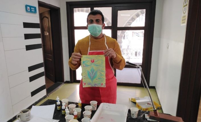 Diyarbakır Büyükşehir Belediyesi Bilgi Evi’nde eğitim gören ve Görsel Sanatlar Kulübü’ne üye olan öğrencilerin online olarak devam ettiği eğitimleri kapsamında Ebru sanatı öğreniyorlar.