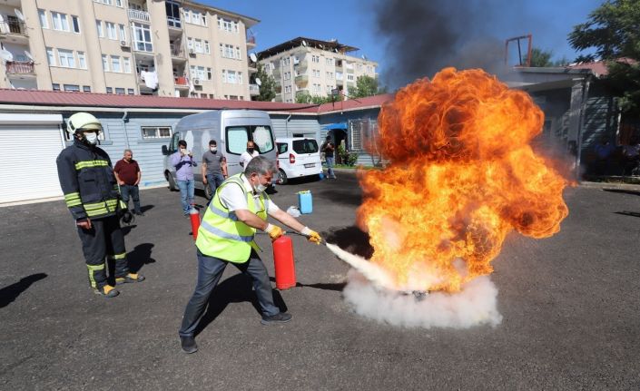 Diyarbakır Büyükşehir Belediyesi Su ve Kanalizasyon İdaresi (DİSKİ) personeline yangına müdahale yöntemleriyle ilgili eğitim verildi.