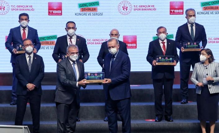 Cumhurbaşkanı Recep Tayyip Erdoğan, ’Genç Dostu Şehirler Fikir ve Proje Yarışması’nda destek almaya hak kazanan Diyarbakır Büyükşehir Belediyesinin ödülünü Vali Münir Karaloğlu’na verdi.
