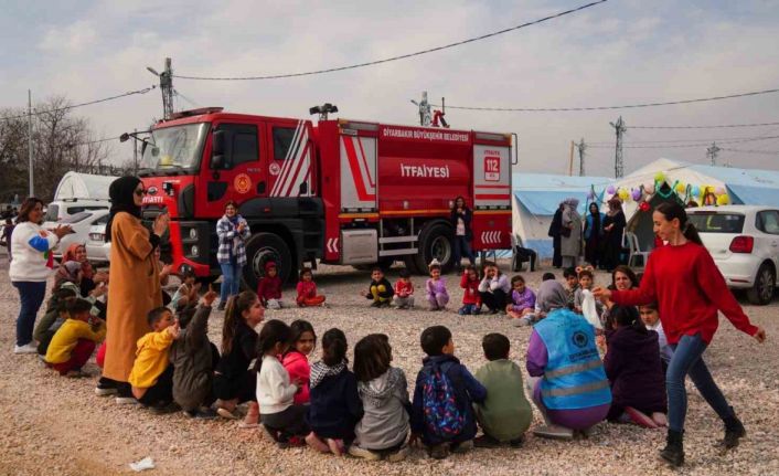 Diyarbakır Büyükşehir Belediyesi, Silvan kara yolundaki çadır kentte barınan depremzede ailelerin çocukları için etkinlik alanı oluşturdu.